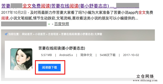 图3-2 标题标明可下载小说,但页面中诱导下载APP的负面案例